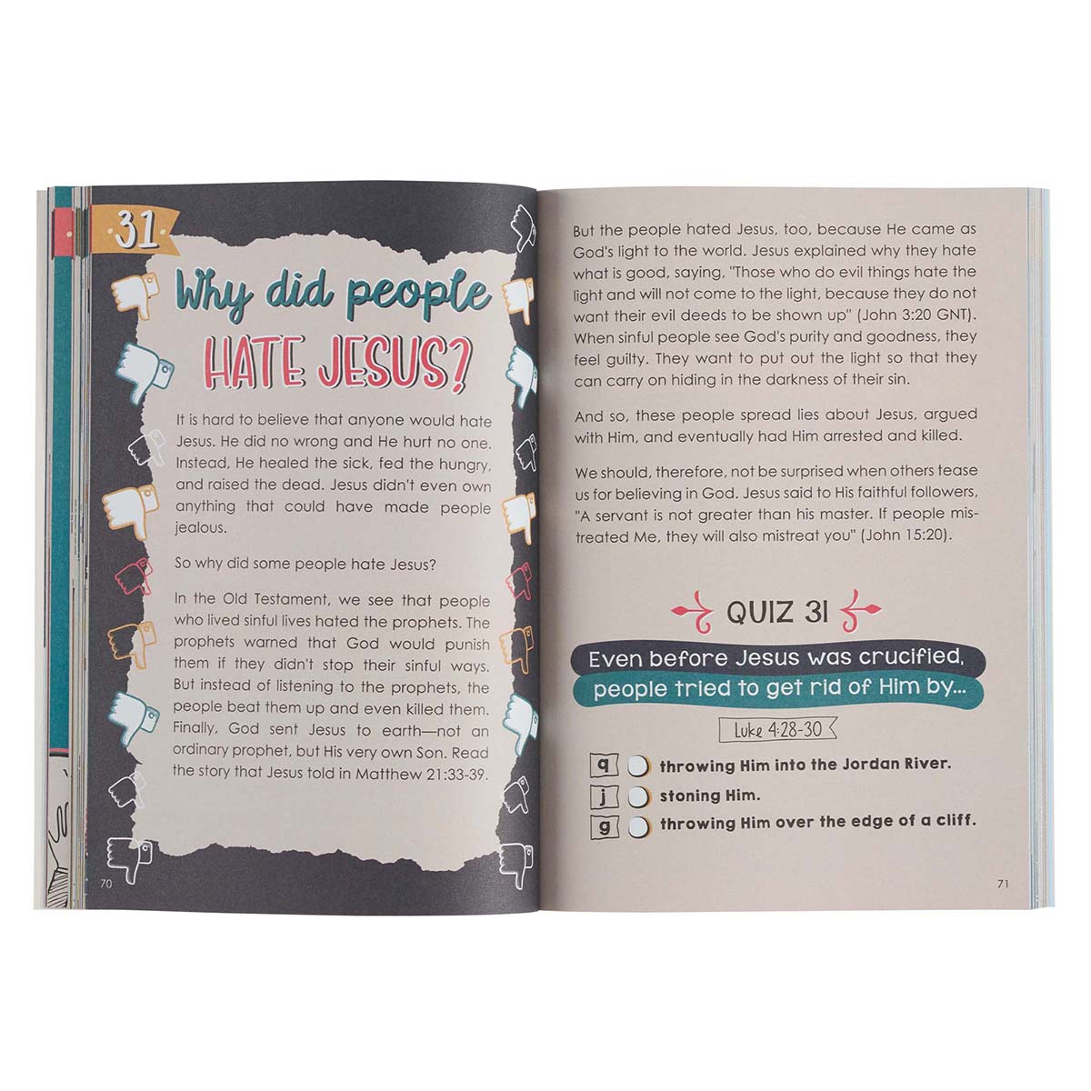 As children explore the answers to their most puzzling questions, they can answer the quiz questions throughout the book and find the answer to a mystery message. Get them interested in reading the Bible with short summaries on each of the 66 books. Each is accompanied by a key verse that is easy to memorize.