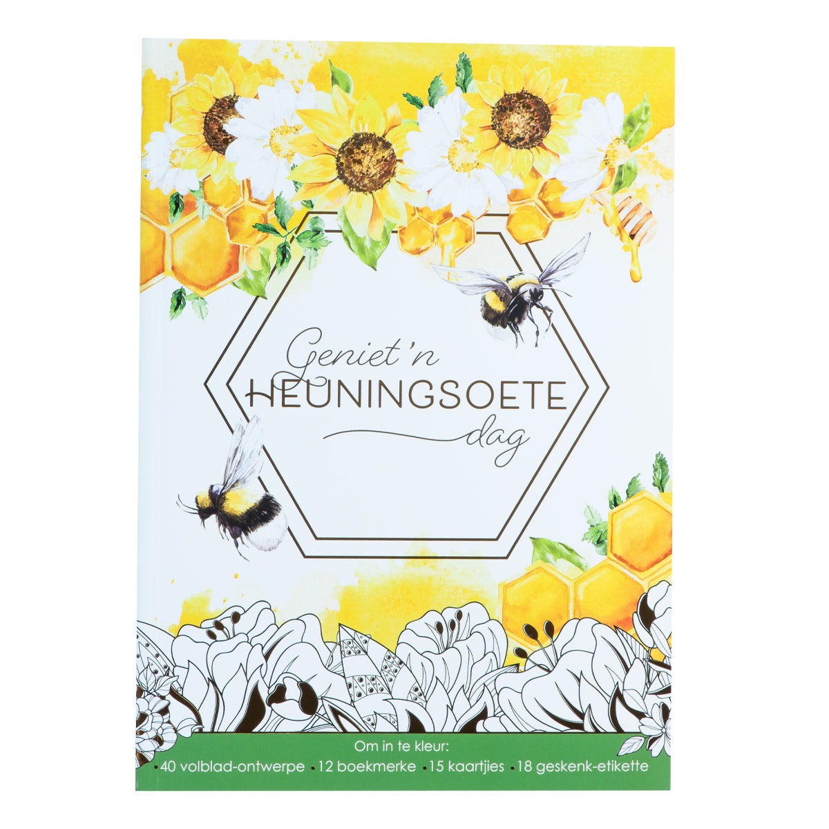 Laat jou gedagtes stil word terwyl jy die 40 volblad-ontwerpe van Geniet ’n heuningsoete dag inkleur. ’n Addisionele 10 bladsye met kaartjies, boekmerke en etikette is ingesluit wat ook ingekleur en uitgedeel kan word.