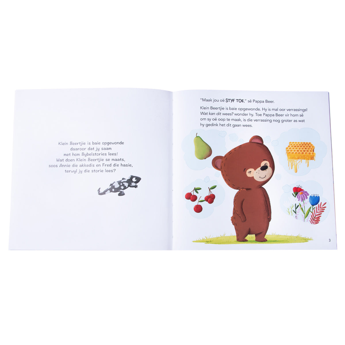 Kom leer jou kleinding van Paasfees met Klein Beertjie, wat graag Bybel lees en daarvan hou om van God te leer.