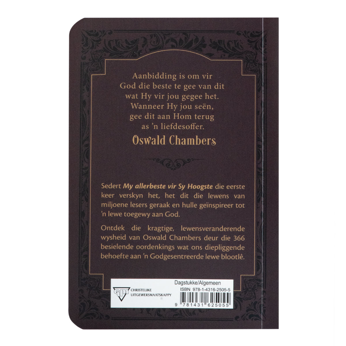 As jy op soek is na oordenkings wat lewenslank sal verryk en inspireer, is My Allerbeste vir Sy Hoogste ideaal. Dit is ’n klassieke topverkoper met 366 diepgaande oordenkings deur Oswald Chambers. Die wysheid en insig in élke oordenking is so ryk en kragtig dat dit ’n ewige impak het op enige leser.