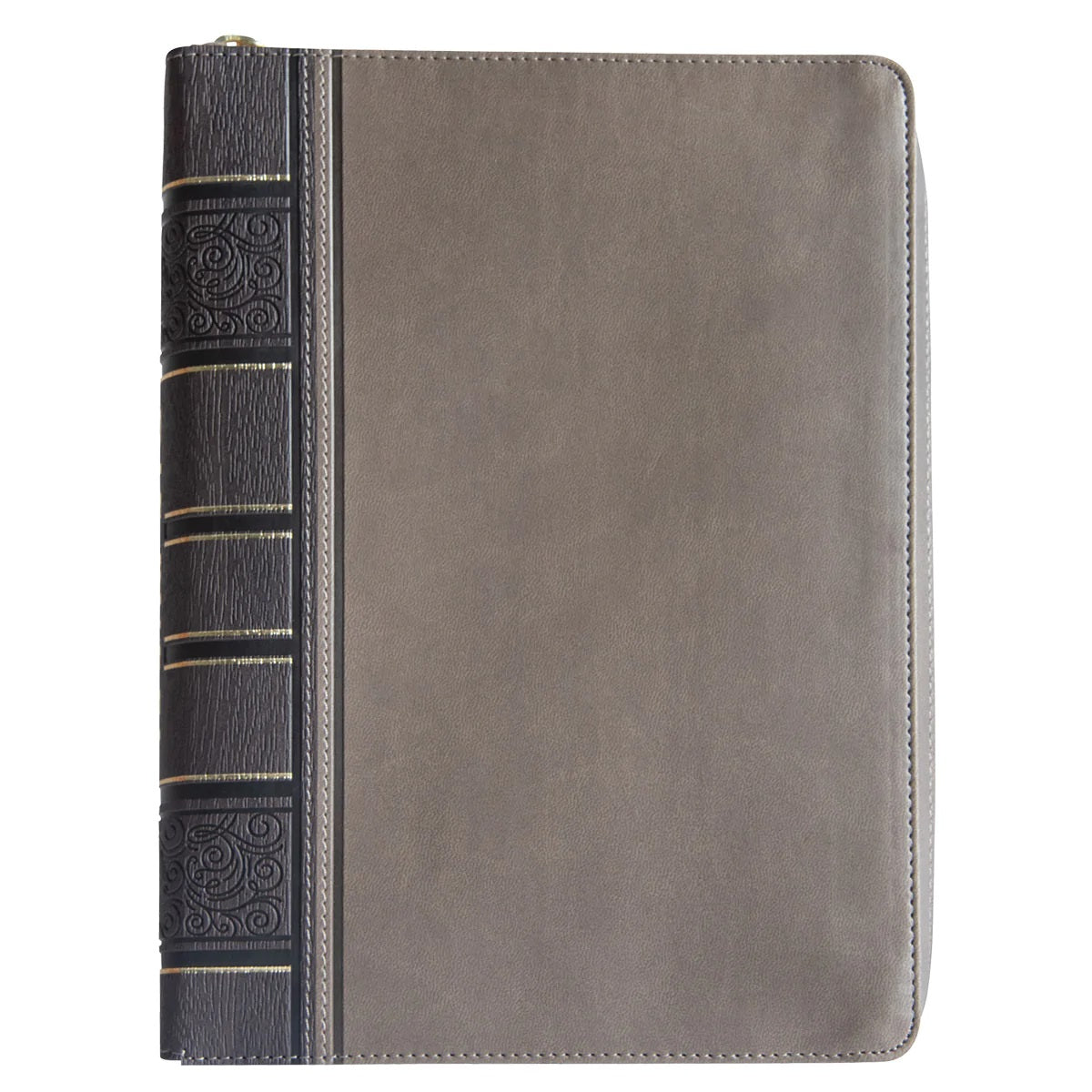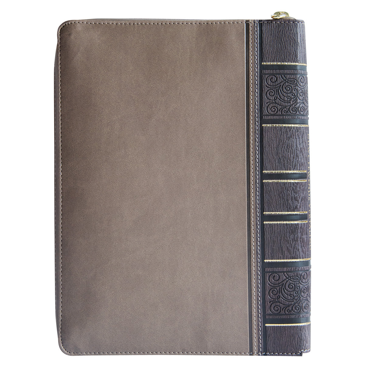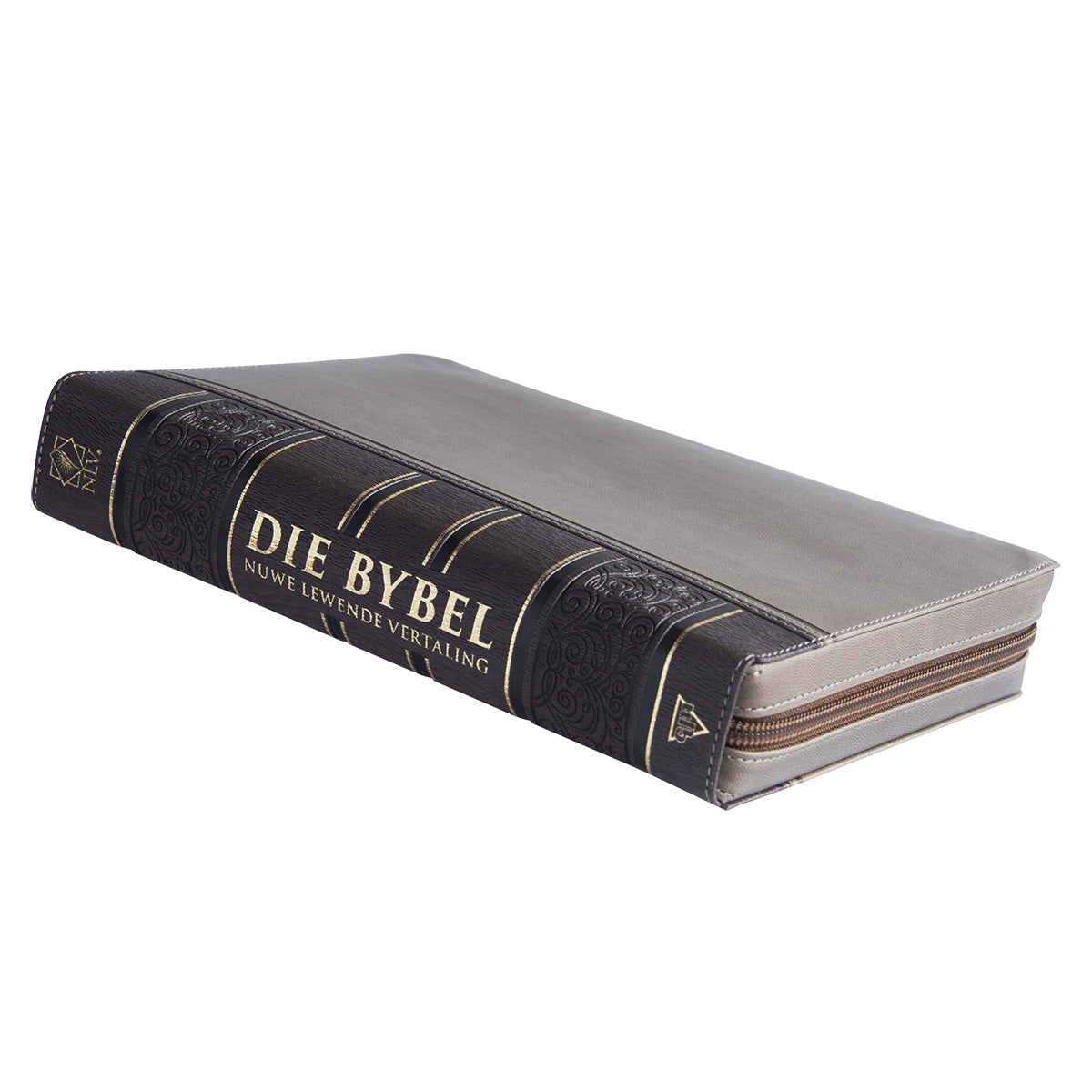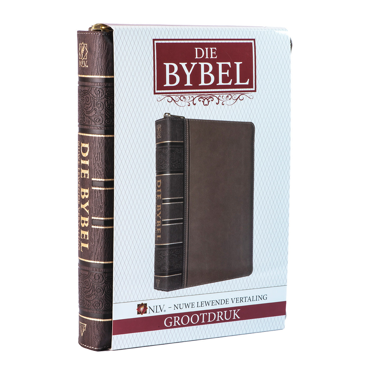 NLV Grootdruk Bybel Met Duimgrepe En Rits Tweekleur Bruin