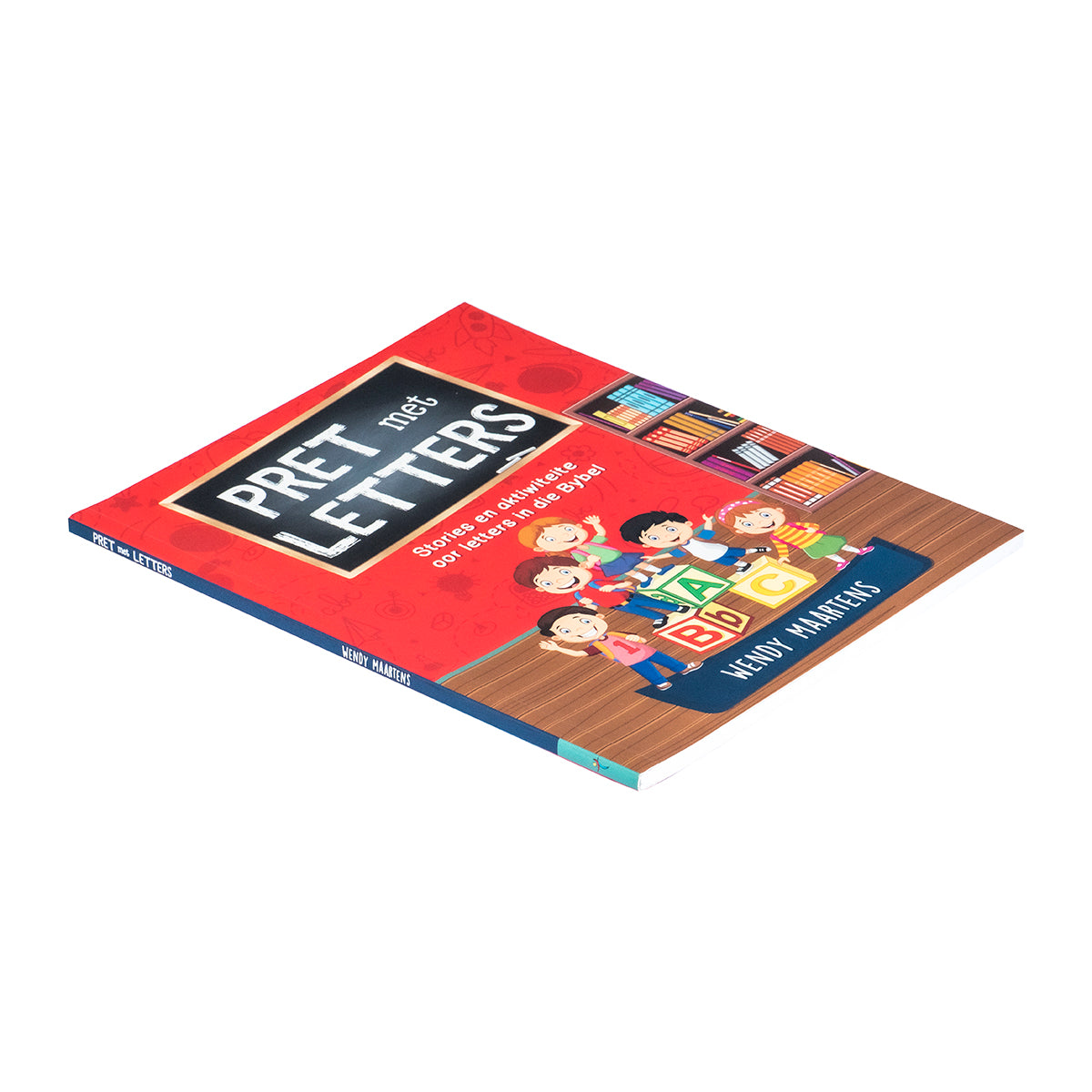In Pret met letters kombineer Wendy Maartens 26 stories met prettige aktiwiteite om 5- tot 8-jariges se taalvaardigheid ’n hupstoot te gee. Wendy het woorde gekies wat ’n Bybelse inslag het, soos ark (A), Betlehemster (B) en Christen (C). Aktiwiteite soos soek die woorde en eenvoudige blokkiesraaisels sal sorg vir ure se pret vir besige lyfies.